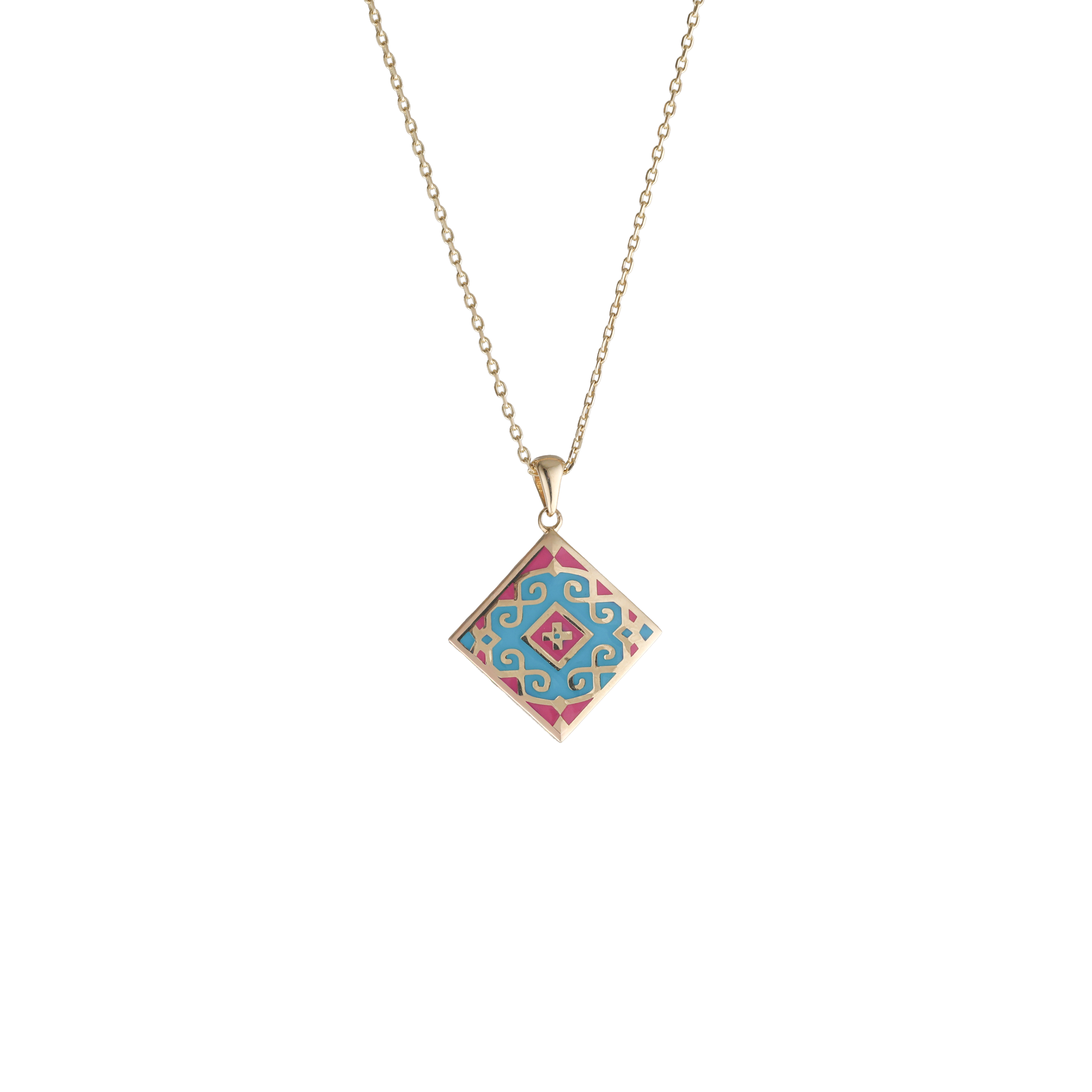 Boyunbağının üzərində həkk olunmuş bu haşiə daha çox Quba Şirvan xalçalarında rast gəldiyinə baxmayaraq, Bakı ''Hilə'' xalçalarına aid olduğu bildirilir. Sənətşünanslar bu elementləri ''Kufi'' hərifləri olaraq qəbul edir. Üzərindəki mavi rəng inam və sədaqəti, bənövşəyi rəng isə zərifliyi ve zənginliyi tərənnüm edir.