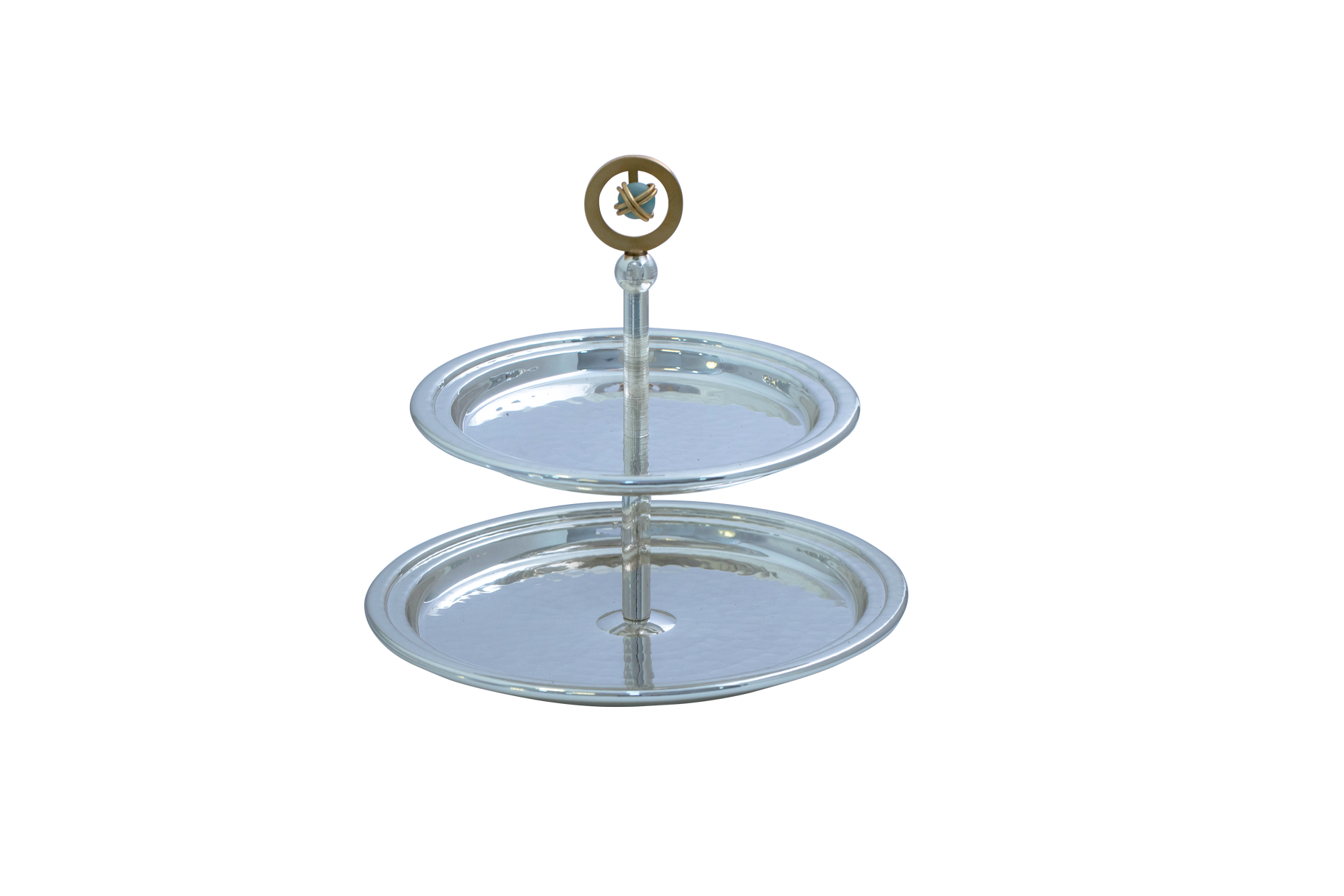 İki hissəli çərəz qabı parlaq metal səthi və unikal dizaynı ilə hər bir süfrəyə uyğun ideal seçimdir. Həm klassik, həm də modern zövqləri tamamlayan bu qab, çərəzlərinizi estetik şəkildə təqdim etməyə imkan yaradır. Evinizdə və ya hədiyyəlik olaraq istifadə üçün mükəmməldir.