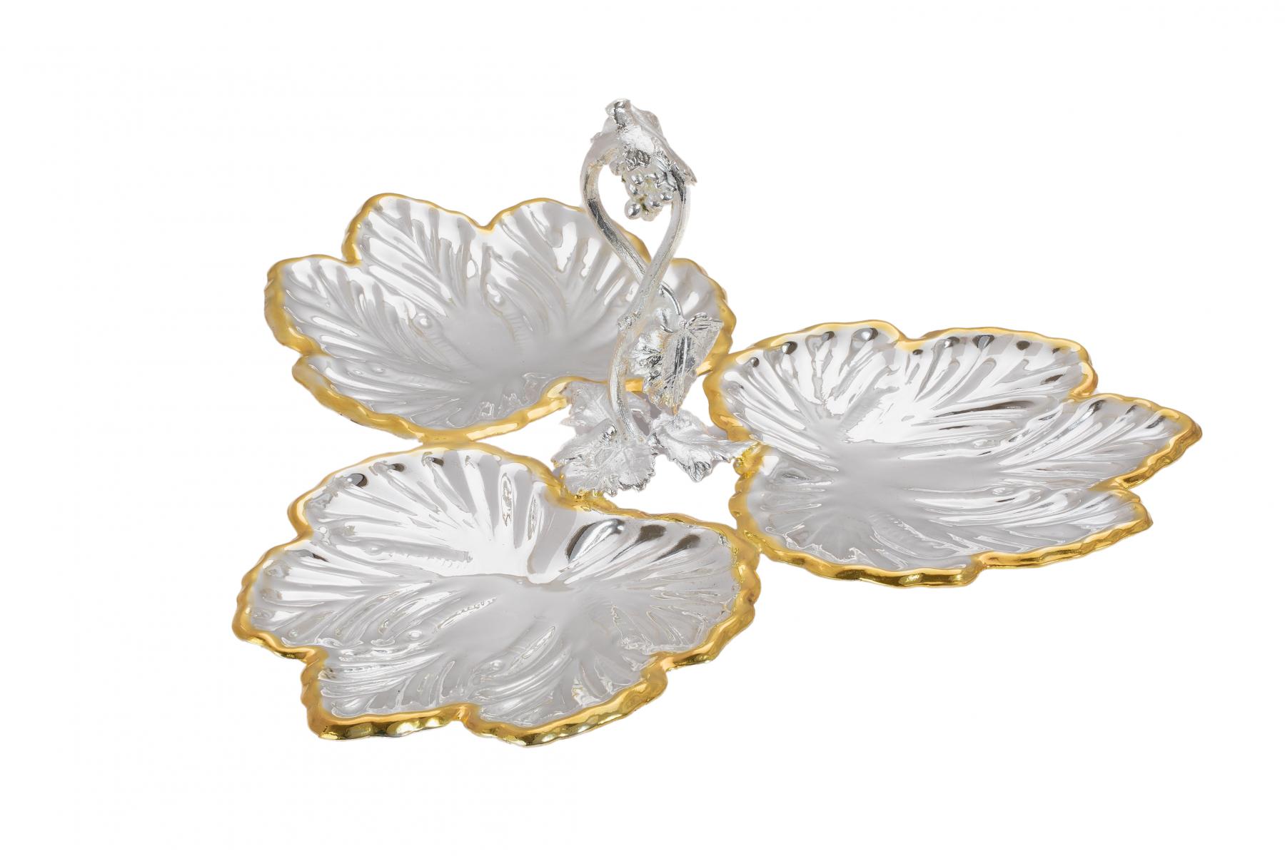 Yarpaq formalı bu çərəz qabı, həm süfrənizi bəzəyəcək, həm də qonaqlarınıza təqdim edəcəyiniz məhsulları ən dəbdəbəli şəkildə nümayiş etdirməyə fürsət yaradacaq. Məhsulun kənarlarını bəzəyən qızılı rəng isə, süfrənizə şık bir görünüş bəxş edəcək.