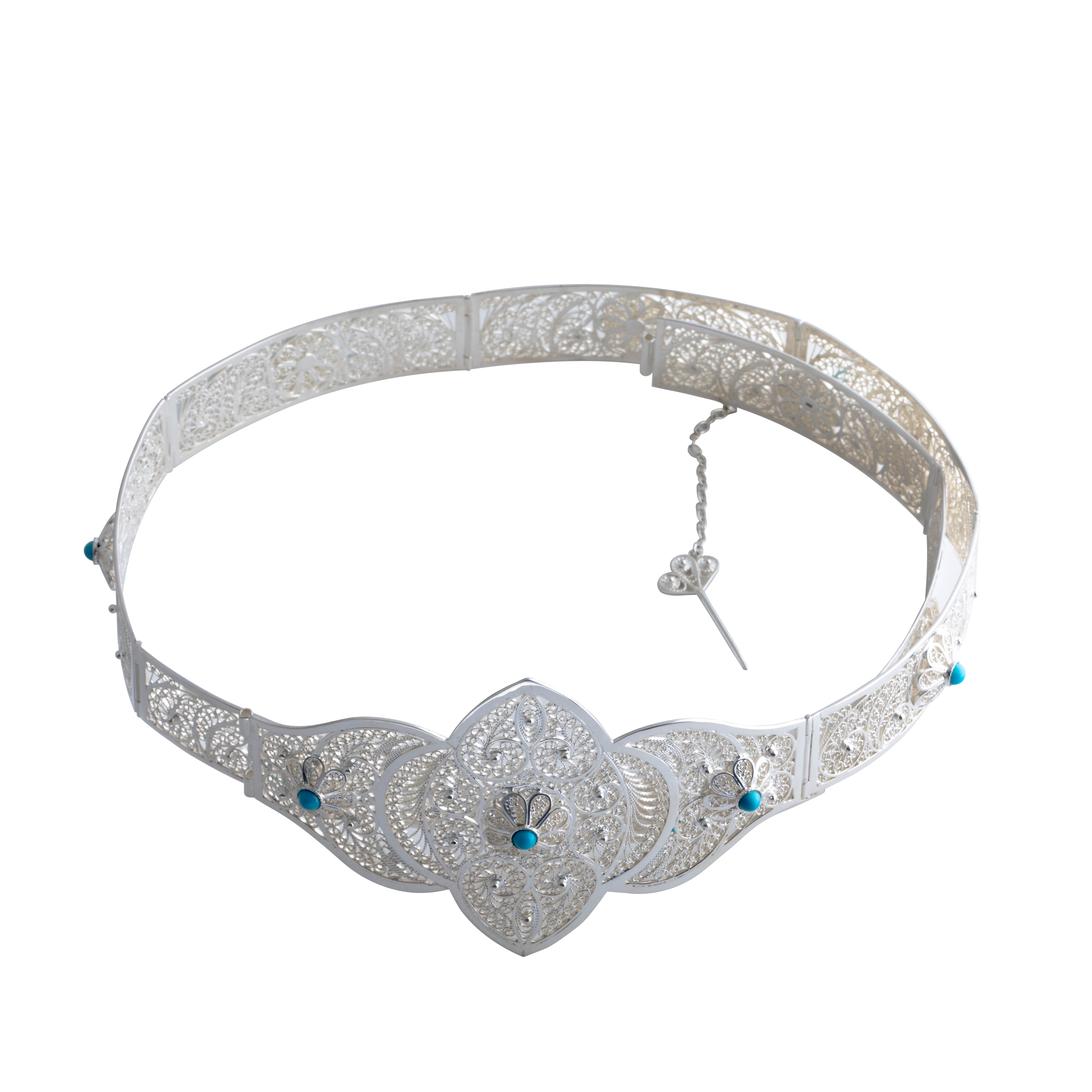 Пояс, являющийся одним из любимых аксессуаров наших дам, имеет очень древнюю историю. Изящные узоры пояса, выполненные нашими мастерами методом ''шебеке'', переносят людей на тысячи лет назад. Яркий внешний вид пояса, ажурная структура придется по душе нашим дамам с настоящим изысканным вкусом.