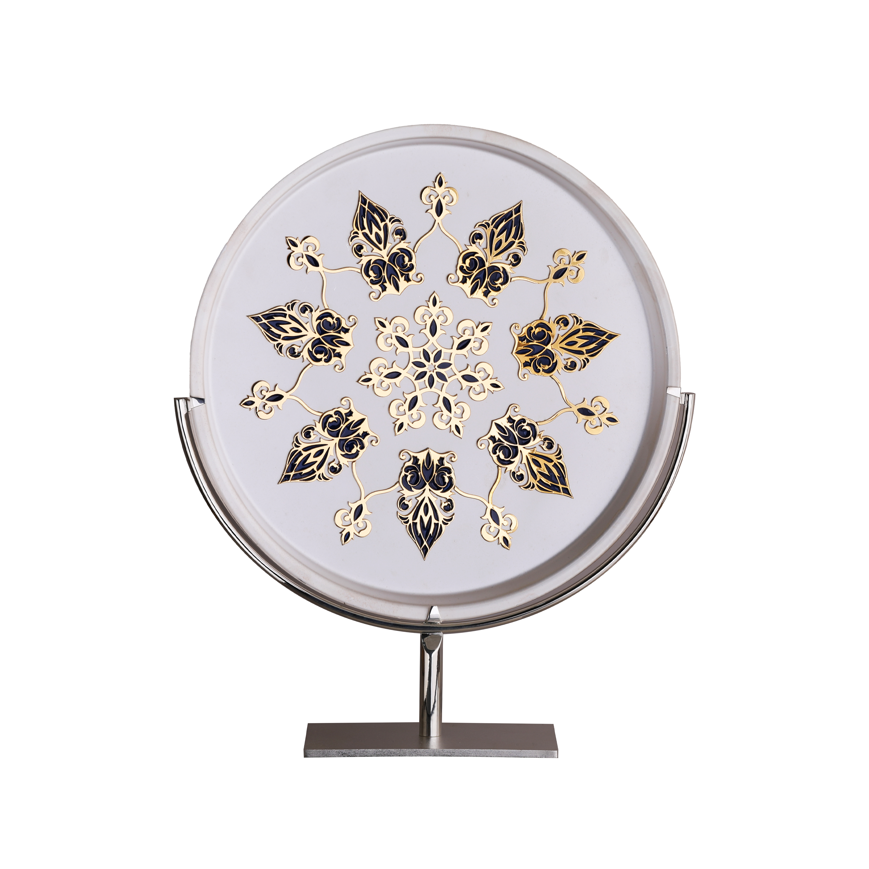 Əl işinin dəqiqliyi, hər bir xəttin və formanın ustalıqla işlənməsi məcməyiyə estetik dəyər qazandırır və onu sənətlə zövqün qovuşduğu xüsusi bir parçaya çevirir. Üzərindəki islimi naxışlar isə həyatın axıcılığını və sonsuzluğunu simvolizə edərək Şərq sənətinin ruhunu yaşadır.