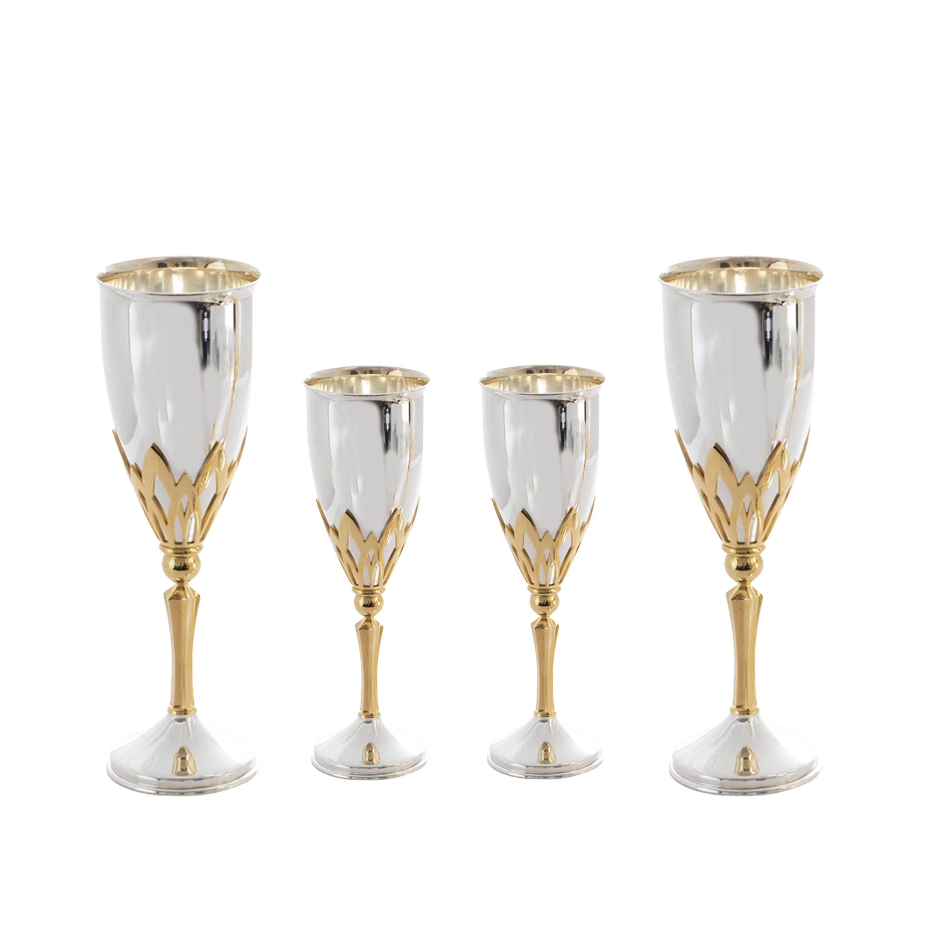Zəriflik və klassikanın vəhdəti olan bu qədəh dəsti, gümüşü səth və qızılı dekorativ elementlərlə seçilir. Nəcib forma və incə işlənmiş detalları sayəsində məhsul həm süfrə bəzəyi, həm də dəyərli hədiyyə kimi ideal seçimdir.
