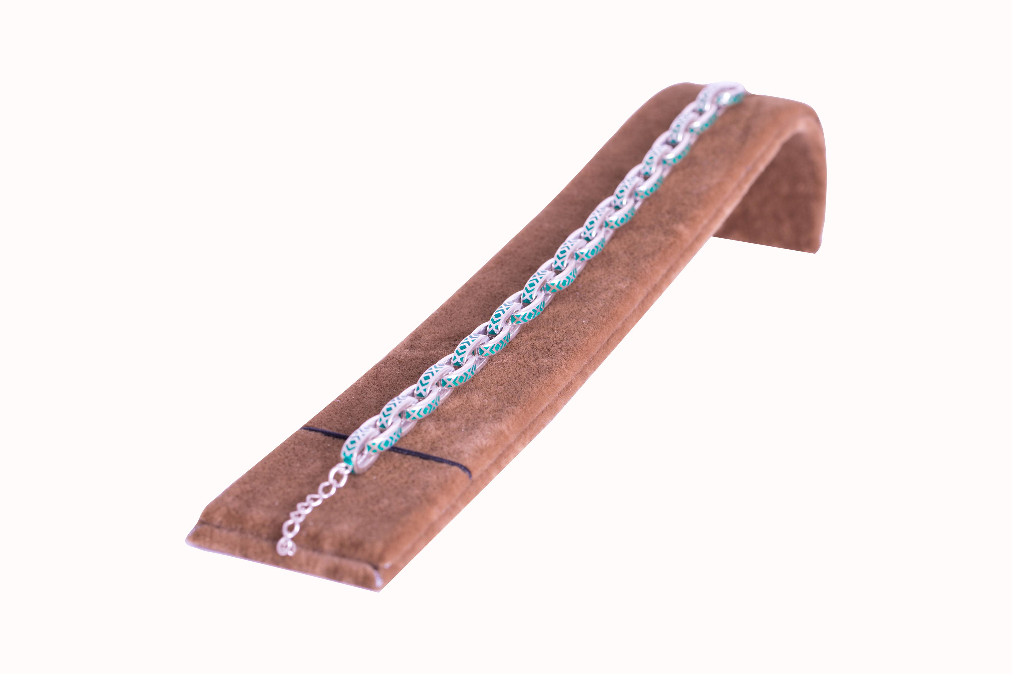Gümüşdən hazırlanan bu qolbaq sadəliyi və parlaqlığı ilə diqqət çəkir. Həm xanımlar həm də, bəylər tərəfindən istifadə edilə biləcək qolbaq həndəsi naxışla dizayn edilmişdir. Bu zinət əşyasının üzərindəki mavi rəng inam və sədaqəti tərənnüm edir.
