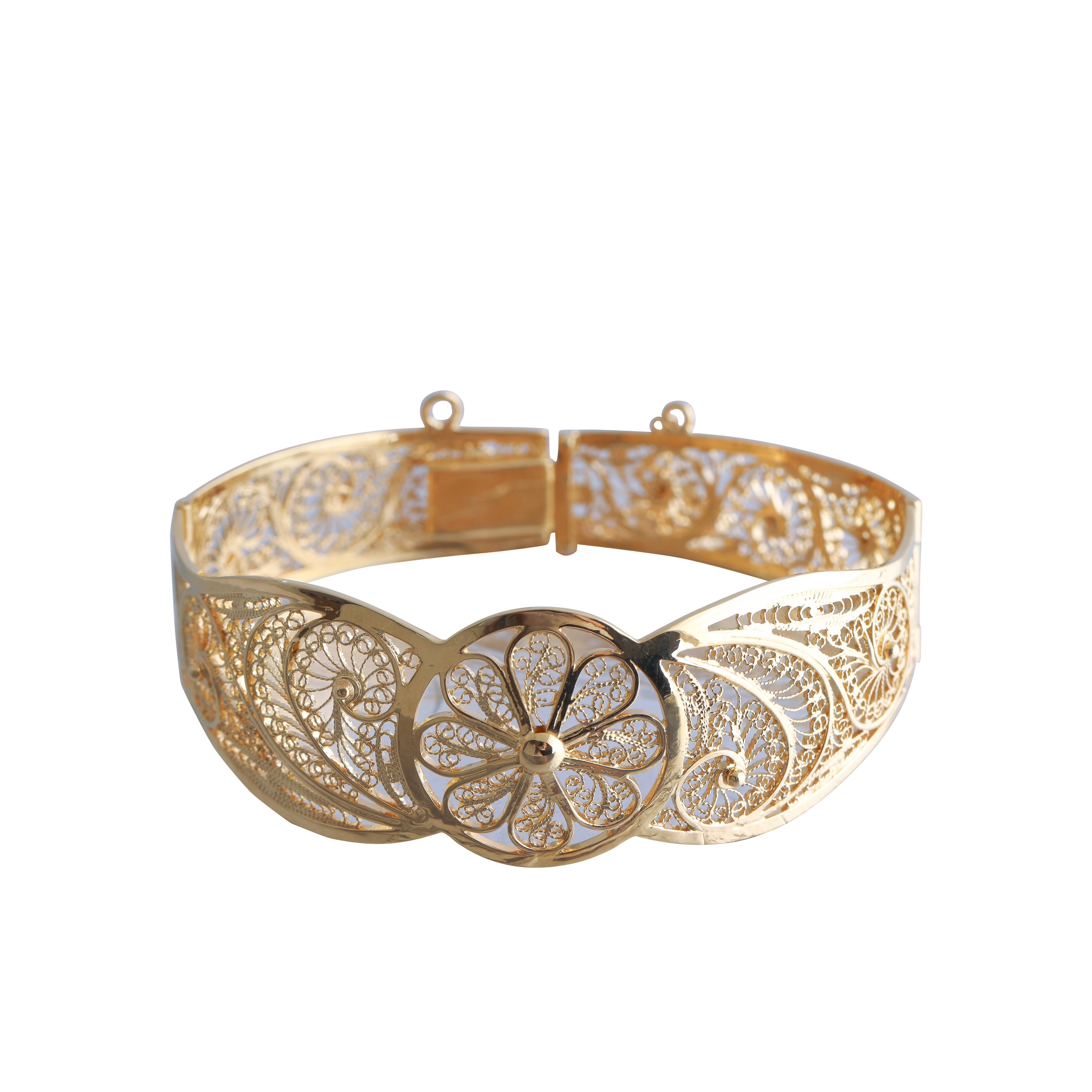 Əsalət dolu ağırlığınıza yaraşan elegant bir qolbağı qarşılayın. Hökmlü davranışları ilə hörmətlə qarşılanan saray xatunlarının zövqlü aksesuarlarının modern dünyadakı təzahürünü təqdim edirik. Aksesuarın qızıl detallarının hər biri xüsusi zövqlə dizayn olunmuşdur. Zərafət ehtiyacınızı zövqünüzcə doyurun!