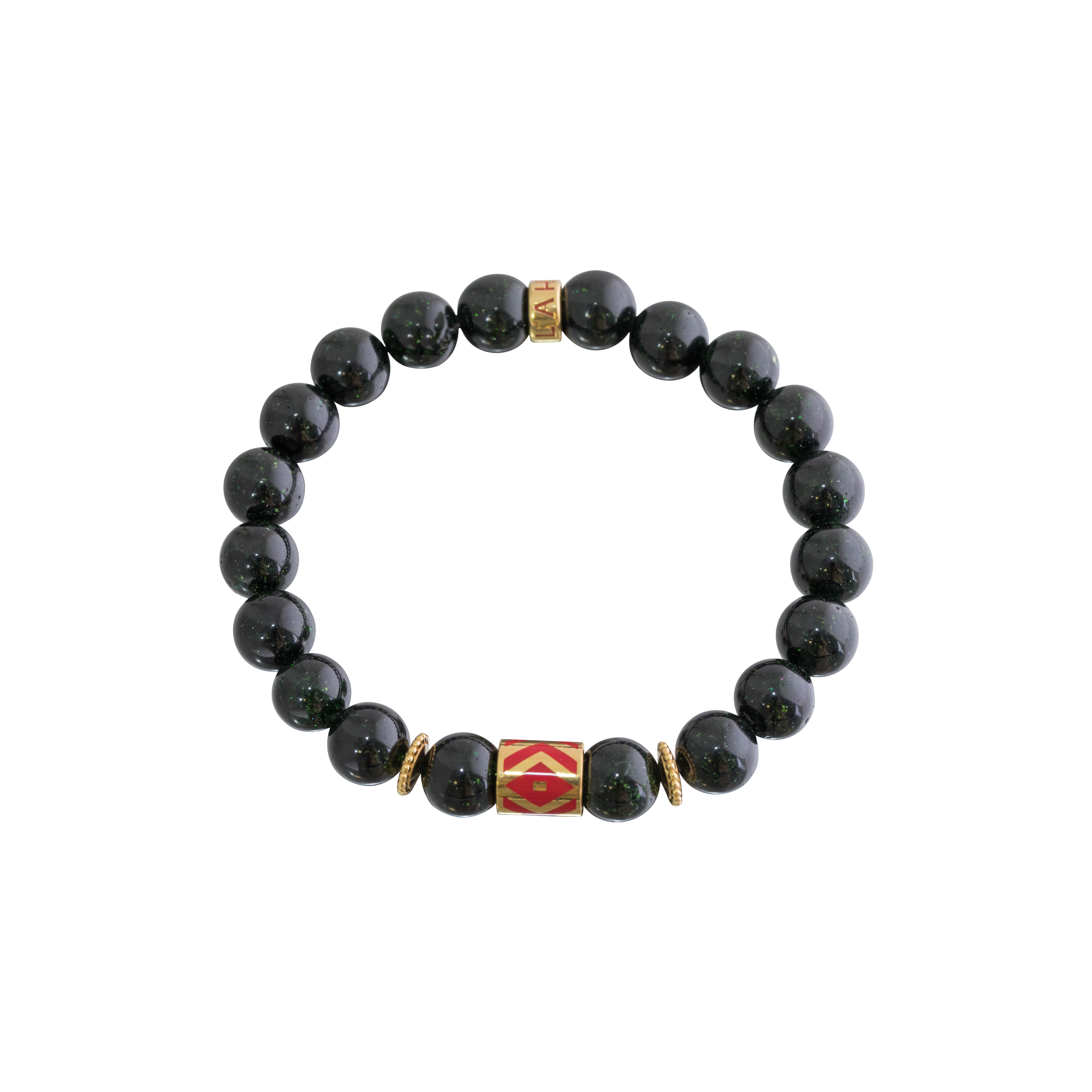 Aventurin daşı tərkibindəki mikro hissəcikləri sayəsində bir az parıldayan bir görünüşə malikdir və bu daşın enerjisinin insanın həyatında müsbət dəyişikliklər gətirdiyi düşünülür. Bu daşdan hazırlanmış qolbaqdan mütəmadi istifadə etmək cəsarət və qətiyyəti artırmaqla yeni imkanları cəlb etməyə kömək edəcək. Eyni zamanda, aventurinin stress və narahatlığı aradan qaldırmağa, insanın emosional tarazlığı tapmasına kömək etdiyi düşünülür.