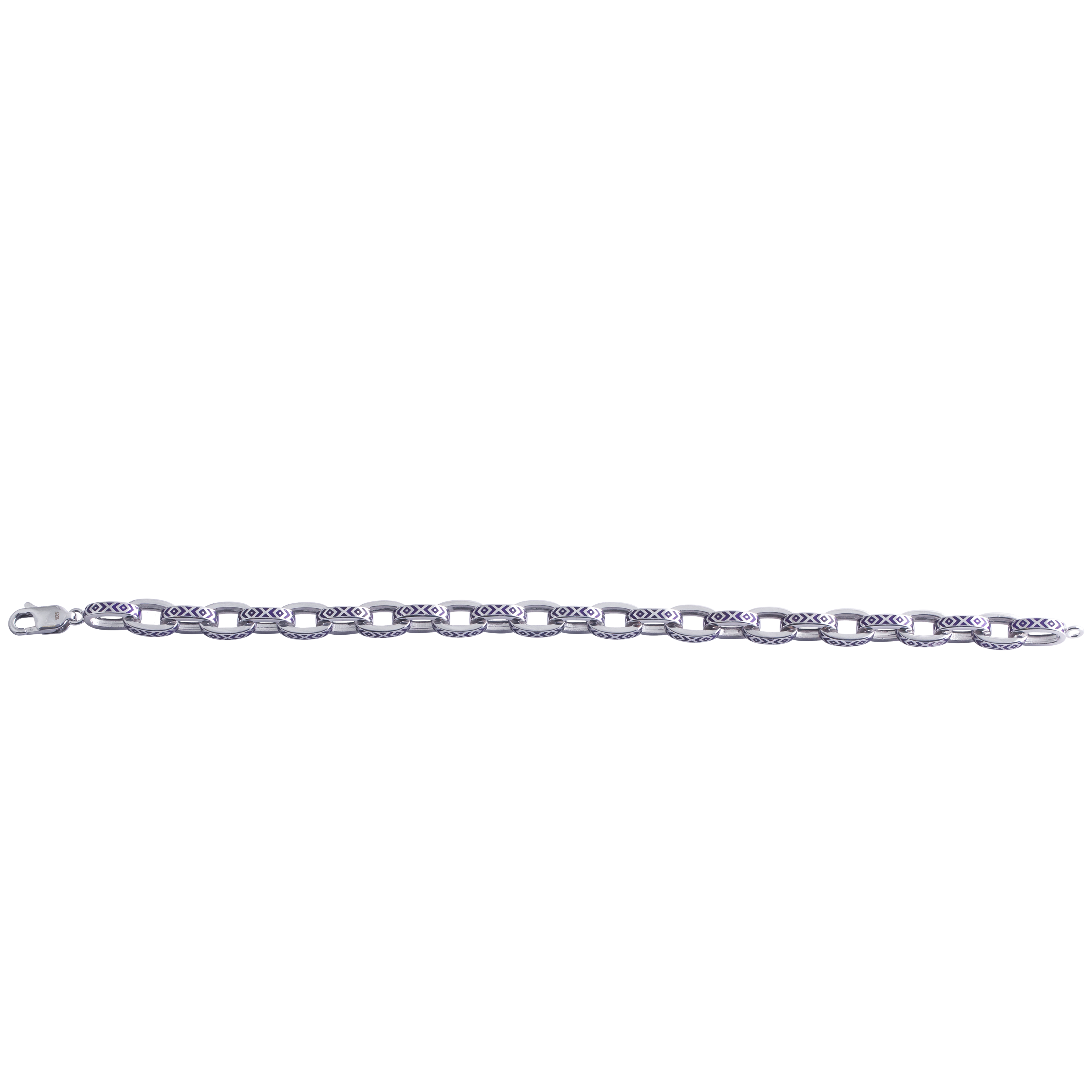 Gümüşdən hazırlanan bu qolbaq sadəliyi və parlaqlığı ilə diqqət çəkir. Həm xanımlar həmdə, bəylər tərəfindən istifadə edilə biləcək qolbaq həndəsi naxışla dizayn edilmişdir. Bu zinət əşyasının üzərindəki bənövşəyi rəng zərifliyi və zənginliyi tərənnüm edir.