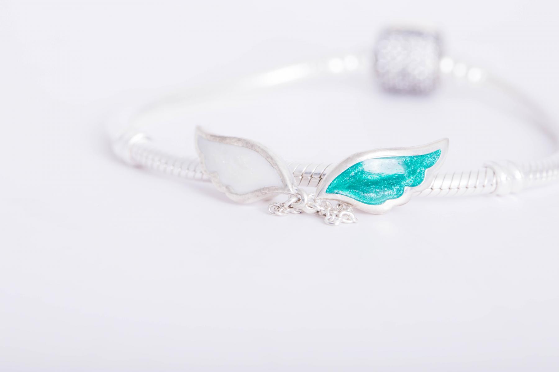 Gümüş materialdan hazırlanmış bu şarmik məsumluğu, paklığı ifadə edən mələk qanadları formasında hazırlanıb. Üzərindəki ağ və açıq mavi rənglər birincliyi sevən, həyat dolu, sülhsevər insanları xarakterizə edir. İki fərqli rəngin harmoniyasından yaranan bu ecazkaz məhsul xoş enerji bəxş edir.