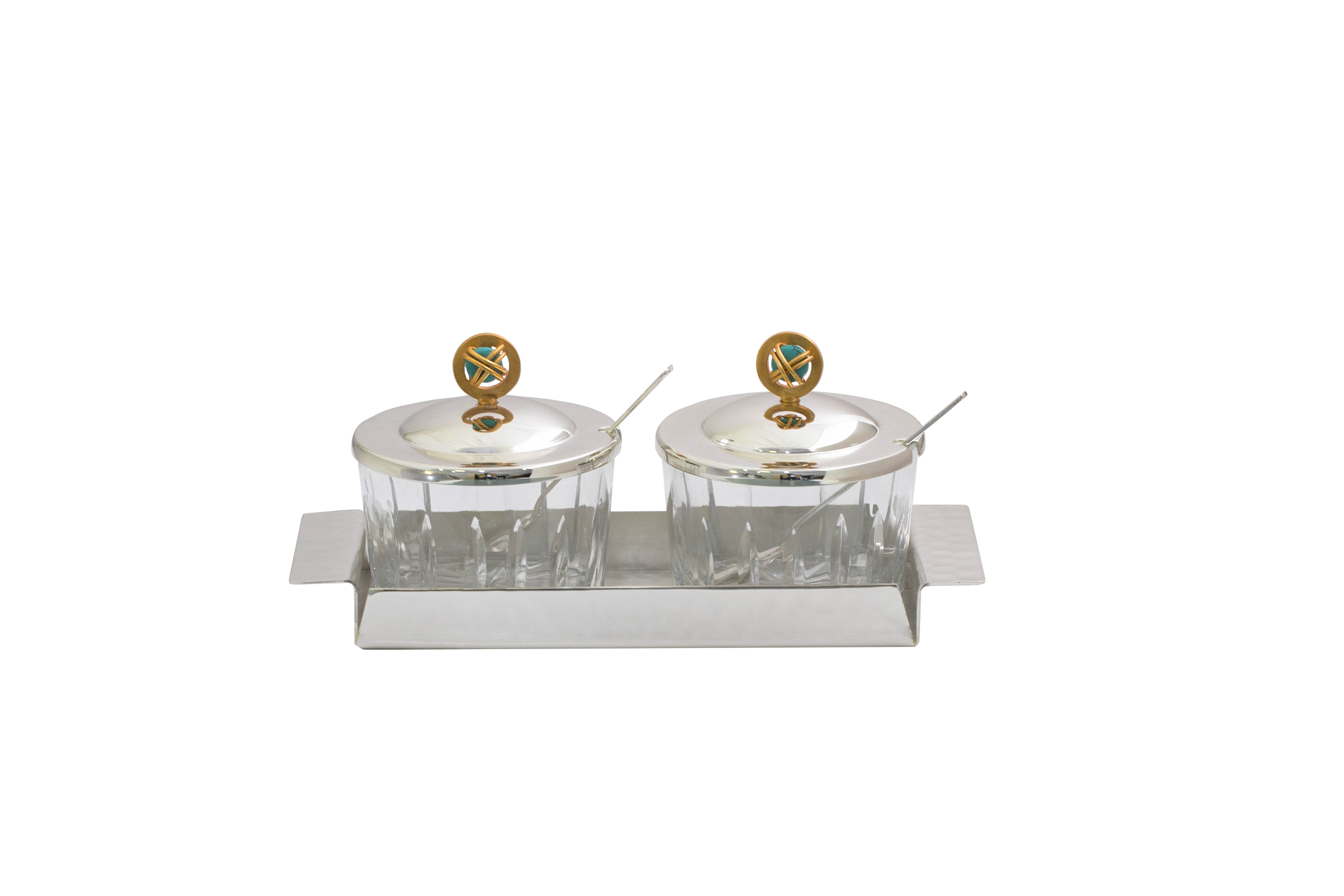 Zərif dizaynı ilə diqqət çəkən bu dəst şəkər qabı masa dekorasiyanıza incəlik qatacaq. Keyfiyyətli materiallardan hazırlanmış qabların qapaqları xüsusi naxışlı tutacaqları ilə tamamlanıb. Şüşə qablar isə kristal şəffaflığı ilə göz oxşayır.