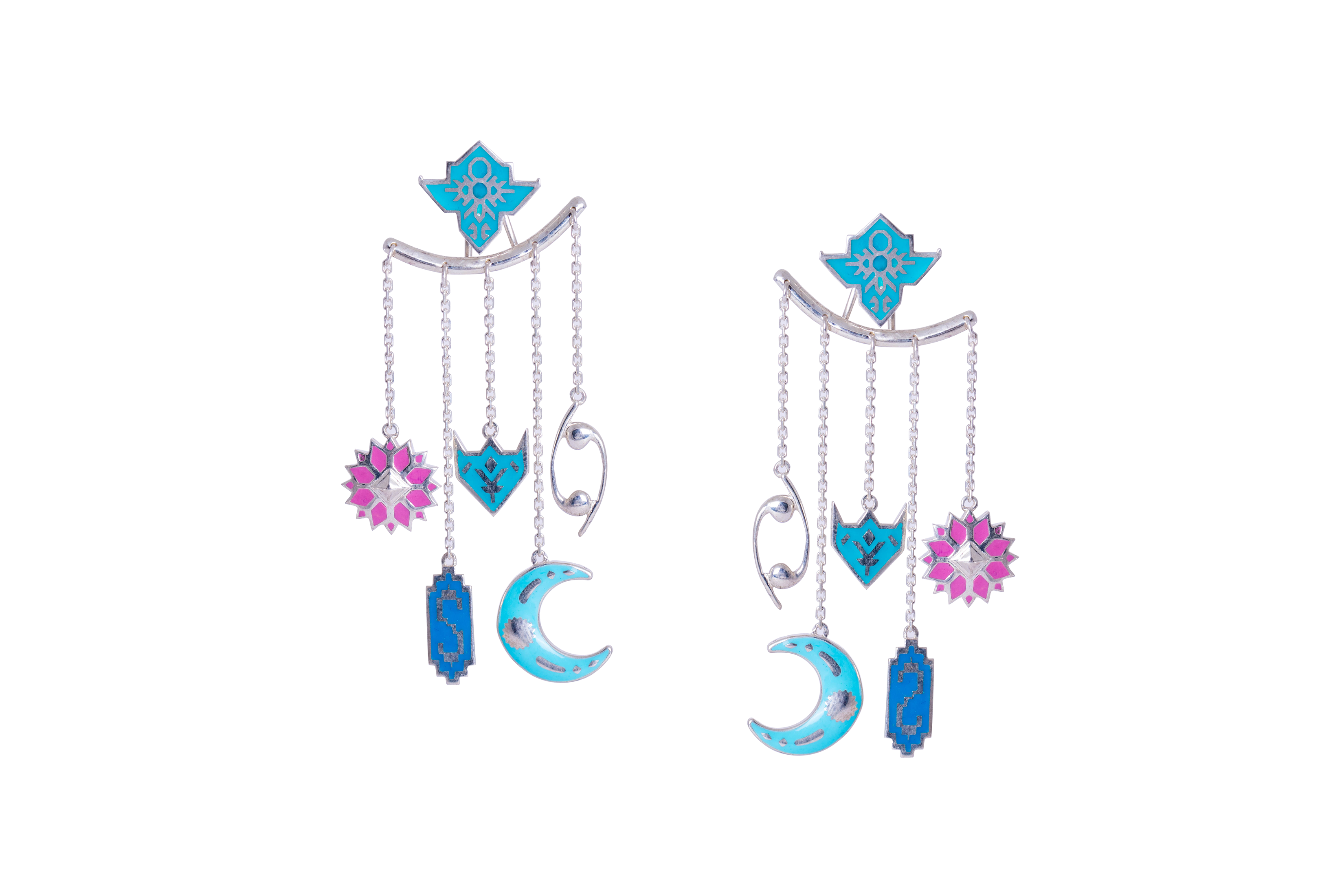 Gümüşdən hazırlanan bu sırğanı birləşdirən aypara simvolu, üçrəngli bayrağımızın üzərində olan səkkizguşəli ulduz, taqalaq naxışı və kətəbə naxışlarıdır. Aypara simvolu antik Azərbaycan zərgərlik məmulatları üçün ilham mənbəyidir. Kətəbə və taqalaq naxışları isə, Azərbaycan xalçalarının qədim naxışlarından biridir.