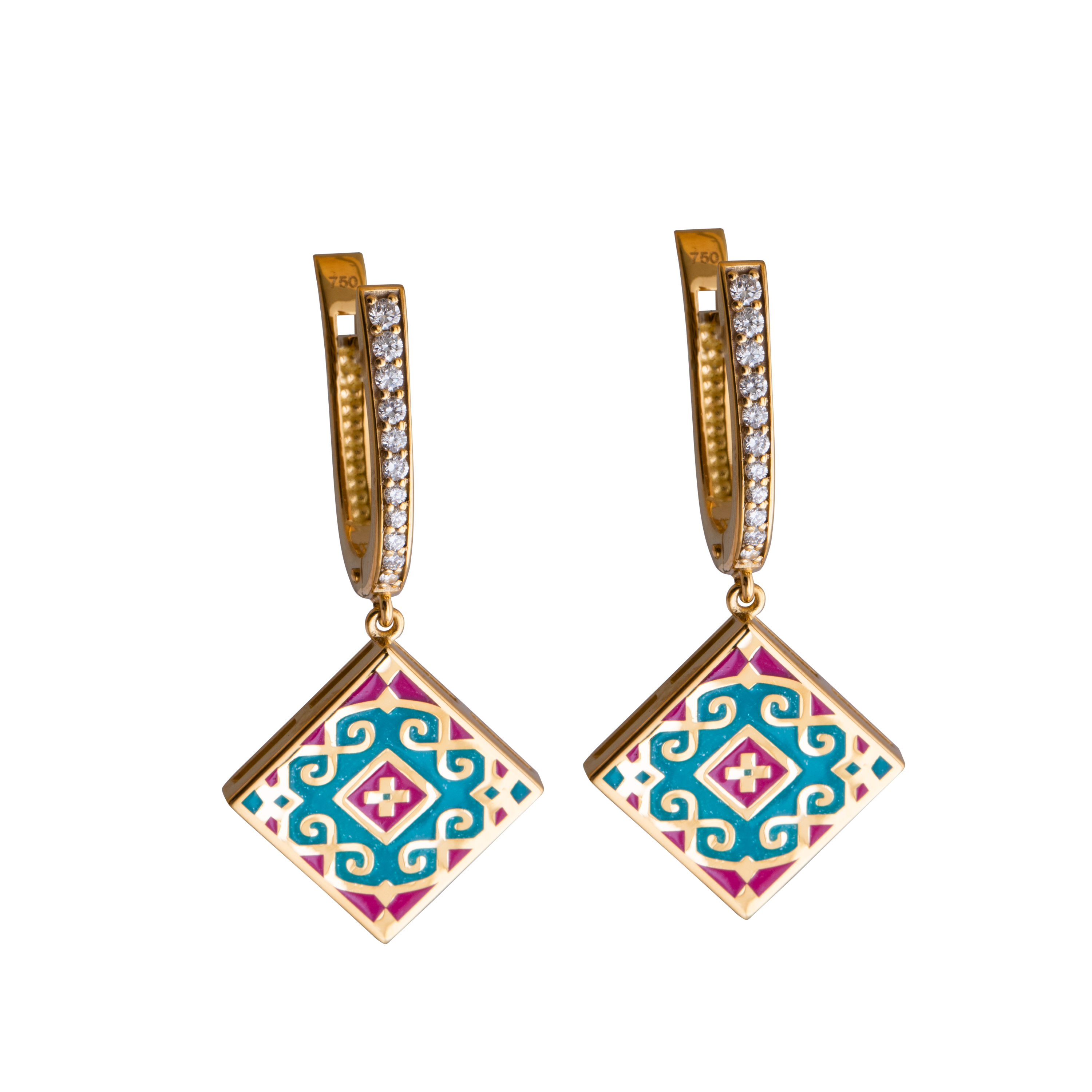 Sırğa üzərində həkk olunmuş bu haşiə daha çox Quba Şirvan xalçalarında rast gəldiyinə baxmayaraq, Bakı ''Hilə'' xalçalarına aid olduğu bildirilir. Sənətşünanslar bu elementləri ''Kufi'' hərifləri olaraq qəbul edir. Gördüyünüz bu sırğa üzərindəki mavi rəng inam və sədaqəti, bənövşəyi rəng isə zərifliyi ve zənginliyi tərənnüm edir.