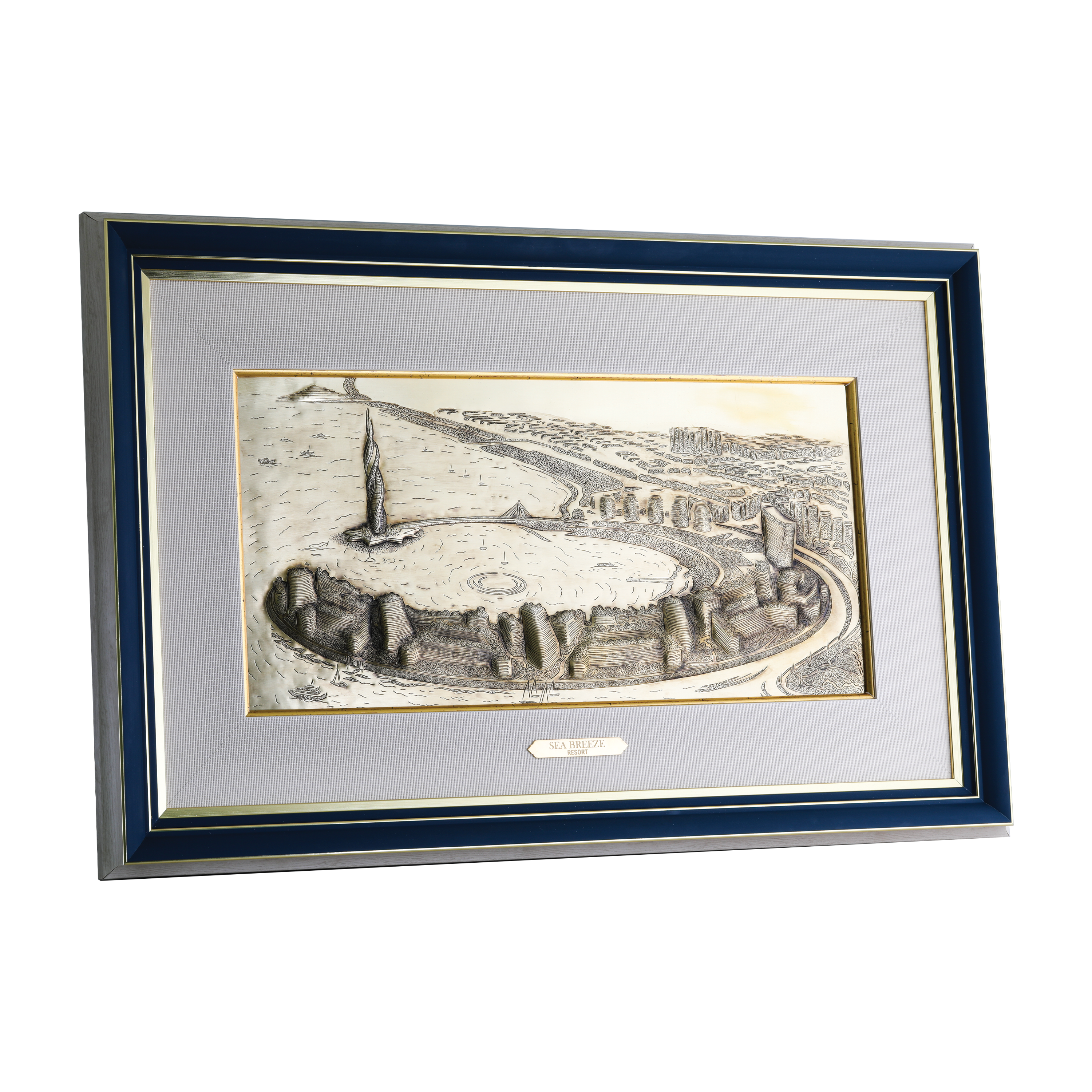 "L'AHIJ" incəsənəti və texnologiyanı birləşdirərək yeni əsərlər yaradır. Bu layihədə "Sea Breeze"in nadir arxitekturası və möhtəşəm mənzərəsi tablo üzərində ustalıqla əks etdirilib. Layihədəki aypara dizaynı milli ruhumuzun önəmindən bəhs edir. Parıltının təmizliyi və zərifliyi, təsvirin dərinliyini artıraraq onu həm dəyərli bir sənət əsərinə, həm də unikal bir simvola çevirib. Bu əsər milli irs və müasir dizaynı harmoniya içində təqdim edir.