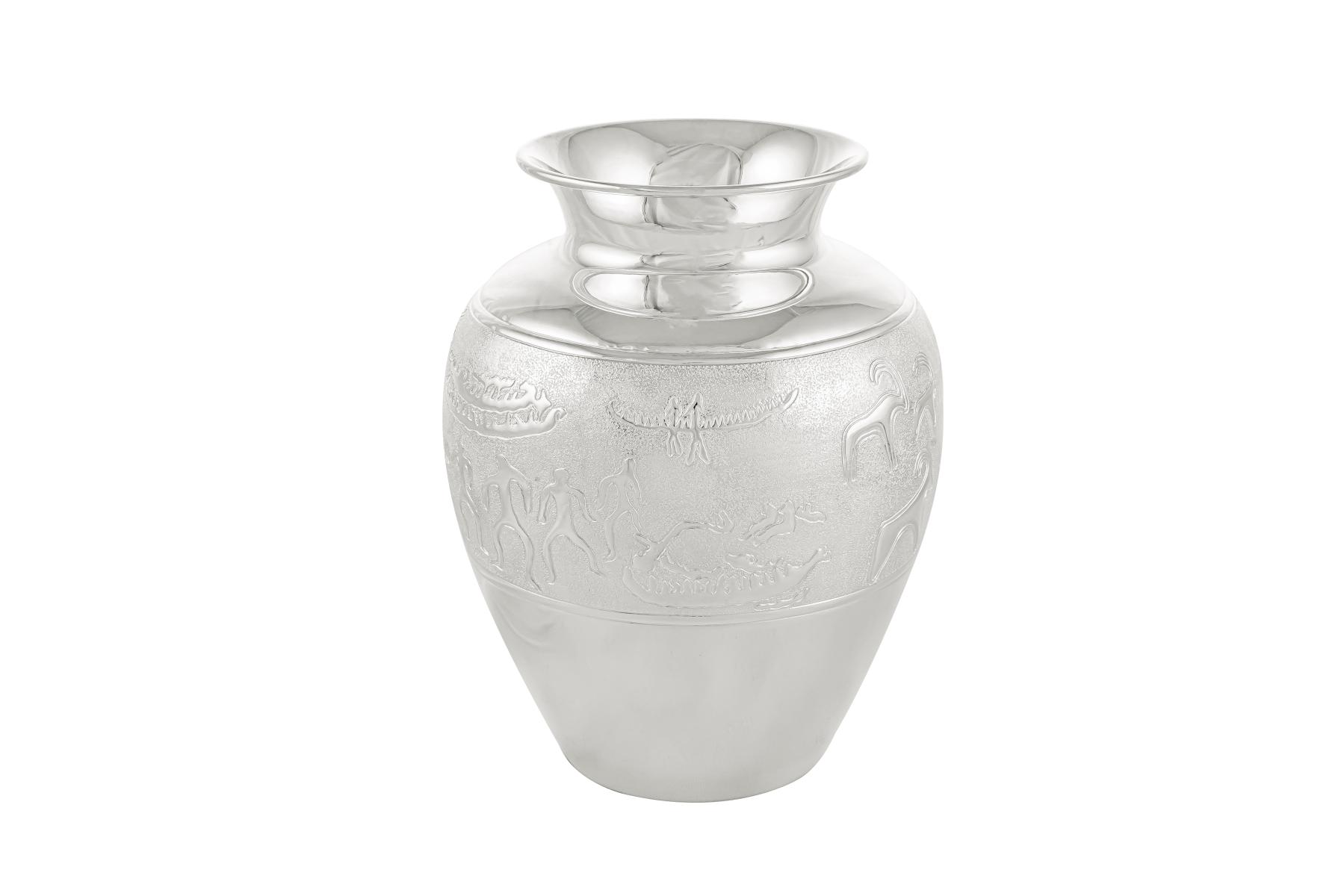 Tarixi ornamentlər evinizi bəzəyəcək! Qobustan qaya üstü rəsmlərini əks etdirən naxışlar, vazanın estetik forması və rəngbərəng çiçəklər ilə birləşib heyranlıq verən rəsm əsərlərini xatırladacaq. Güllərin xoş qoxusu və zərafəti evinizə daşıyın