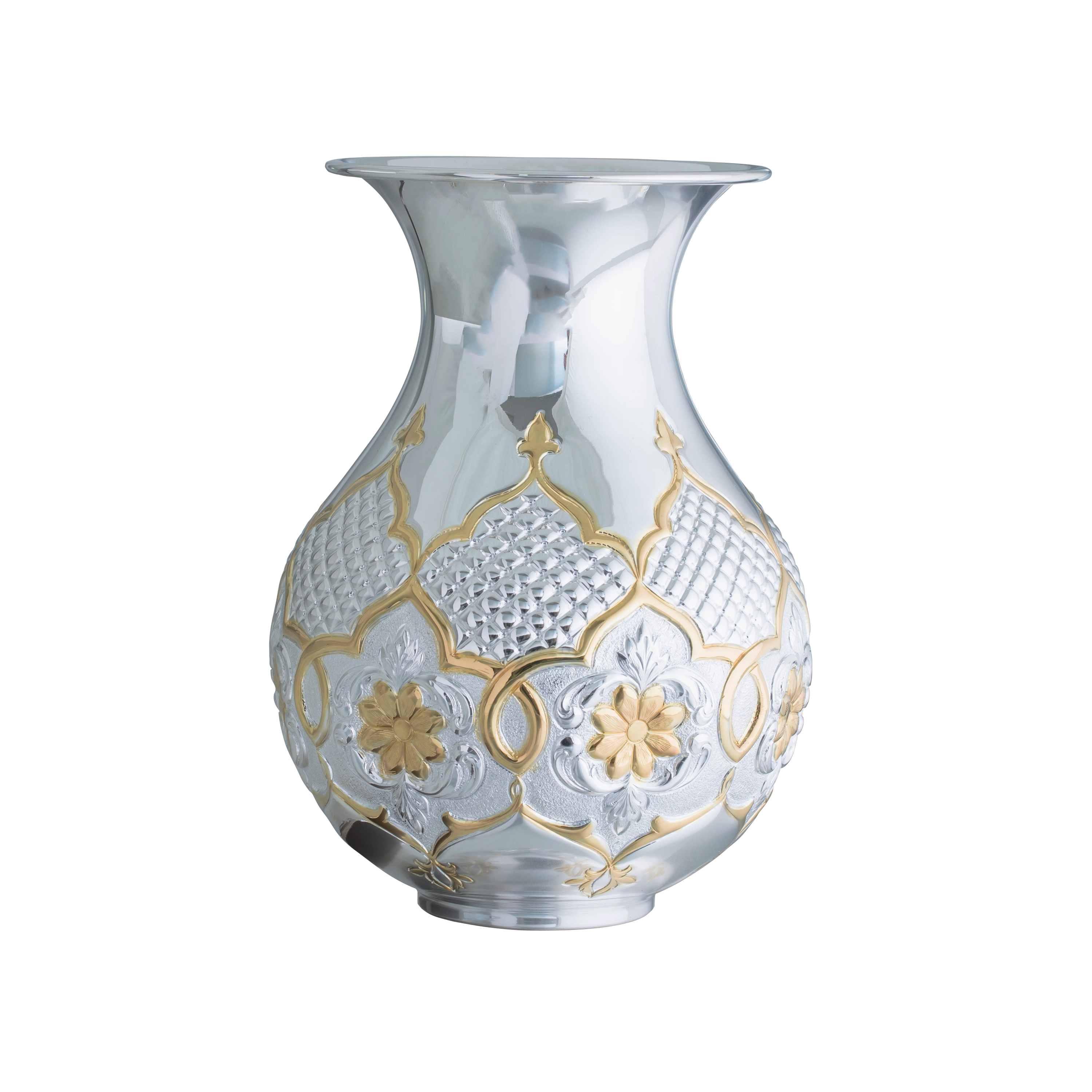 Bir-birini tamamlayan estetik detallar! Gümüşün parlaqlığı ilə qızılın zərafətinin əfsanəvi vəhdəti. Rəngbərənd güllər də əlavə olunarsa, orta əsr tablolarını qısqandıracaq bir gözəlliiklə qarşılaşacaqsınız. İnteryerinizə zövqlü aksesuarlar ilə dəyər qatın. Gülləriniz layiq olduğu yerdə!