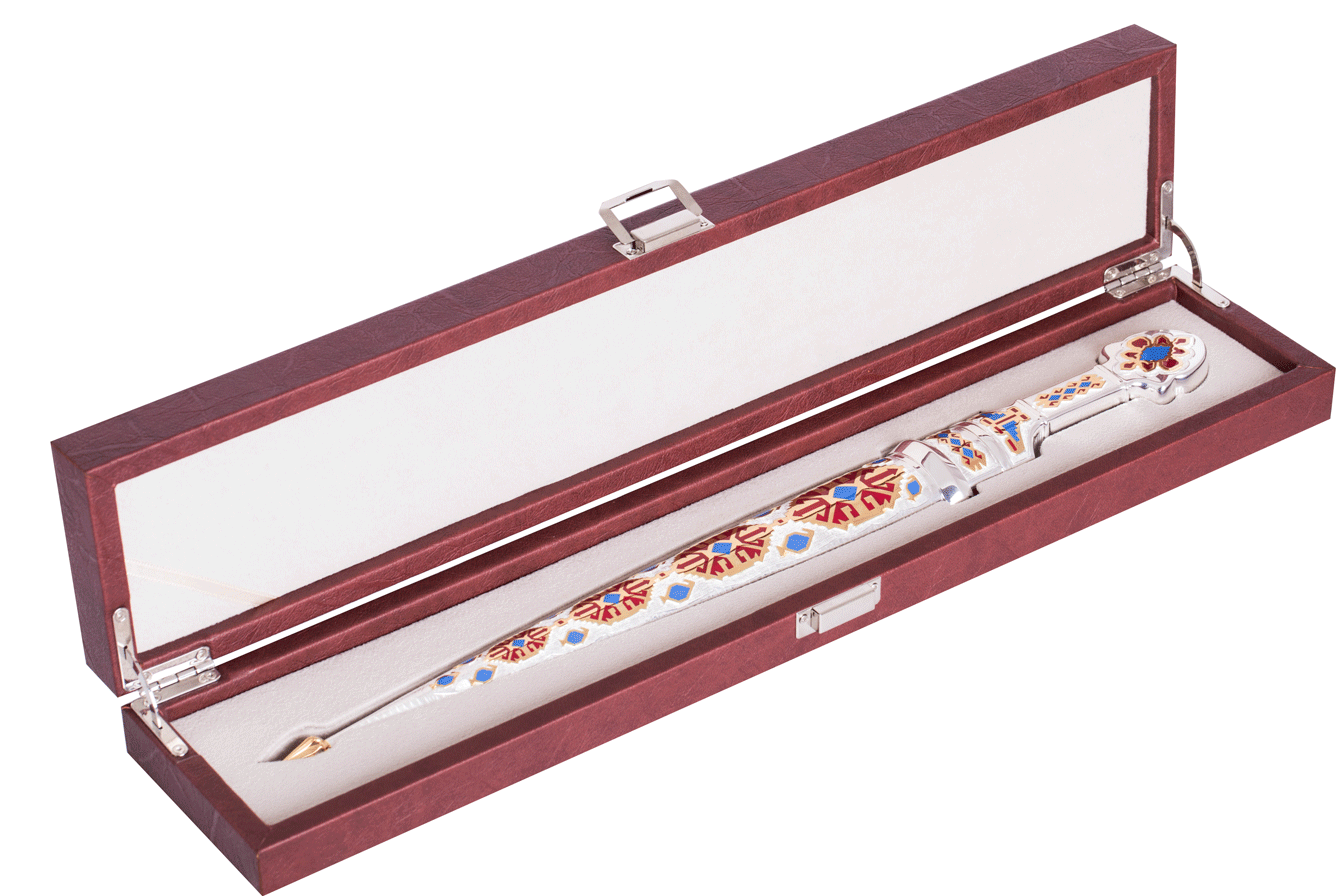 Bu xəncər tarixin köhnə aksesuarı kimi yenidən doğulur və sizə təqdim edilir. Kəskin gücün təmsili kimi, bu zəhmli əksesuar zövqlə işlənmiş naxışlar və tarixi detallarla birləşdirilmişdir. Döyüş əsgərlərinin, qəhrəmanların və cəngavərlərin müharibədə ən yaxın yoldaşı olaraq tanındığı xəncər, dəyərli insanlarınıza hədiyyə olaraq təqdim edilə biləcək gözəl bir dekor kimi təsvir olunur.