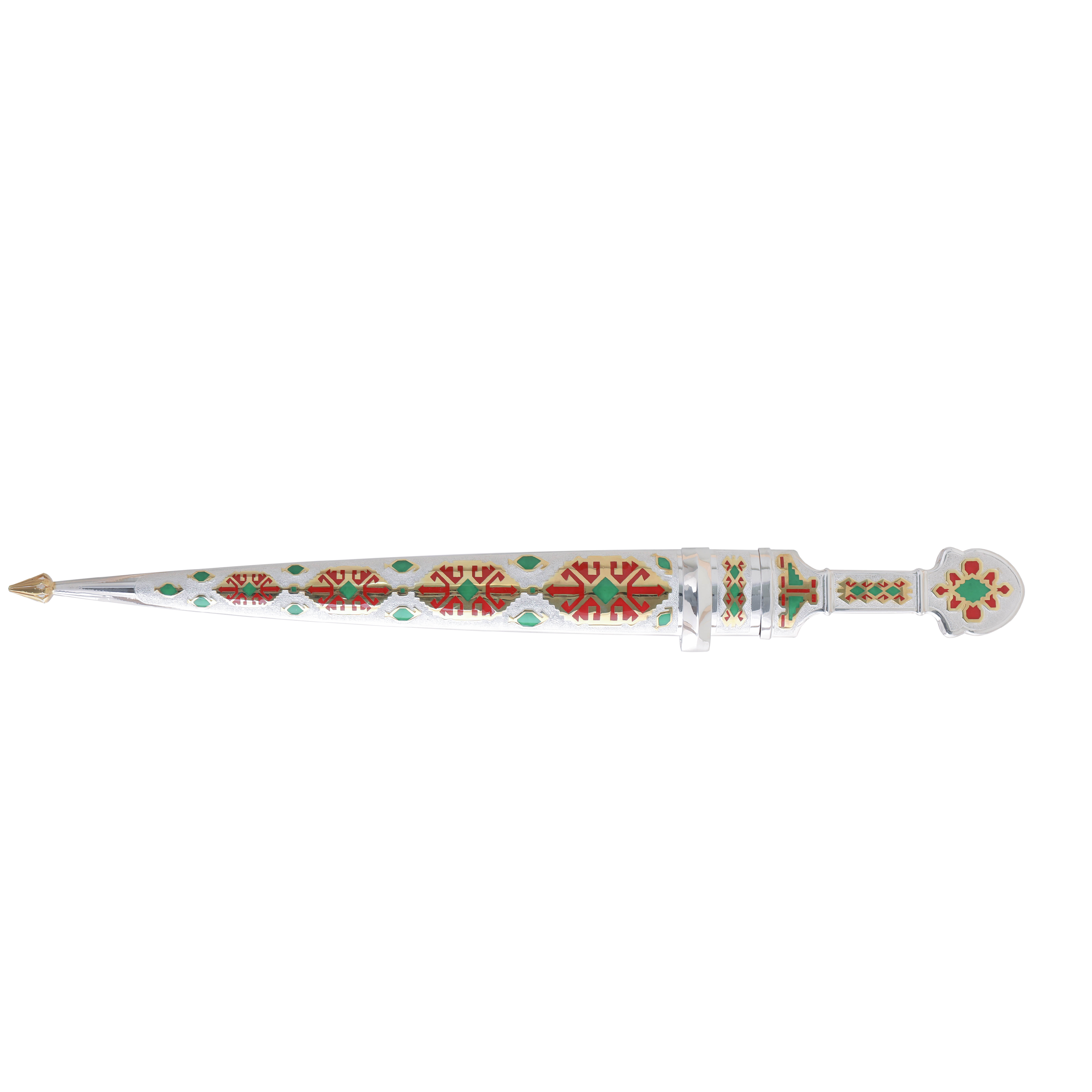 Kəskin gücün təzahürü. Tarixin zəhmli aksesuarı yenidən doğularaq xidmətinizə verilir. Zövqlü naxışlar, tarixi detallar və dəbdəbəli görüntüsü ilə! Cəngavərlərin, sərkərdələrin və qəhrəmanların döyüşdə ən yaxın dostu kimi adlandırdıqları xəncər, hədiyyə olaraq təqdim etdiyiniz yaxınlarınızın sevimli dekorlarından birinə çevriləcək.